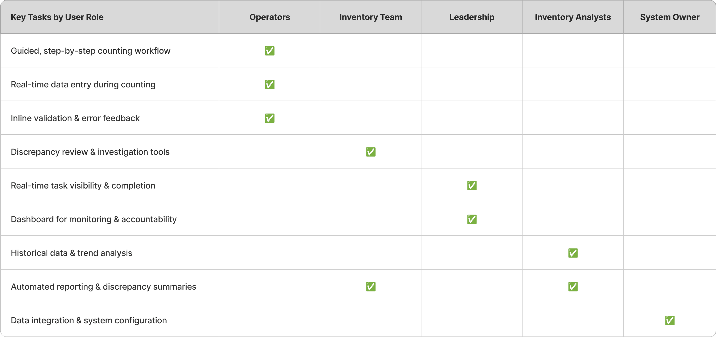 The system is organized around key workflows: cycle counting and discrepancy review. This structure helps users quickly find what they need, track progress, and understand what actions to take, making it easier for teams to stay aligned and make decisions faster.